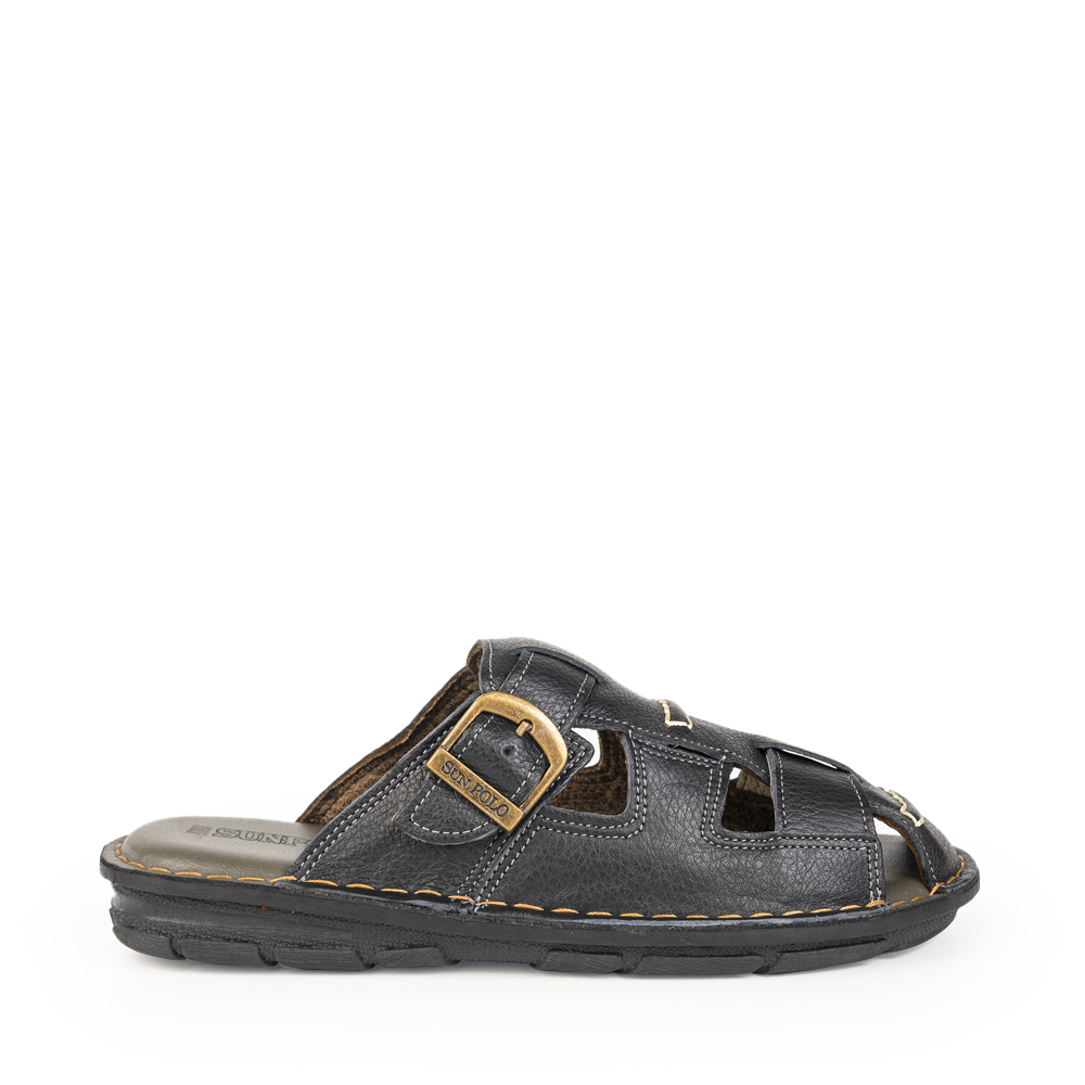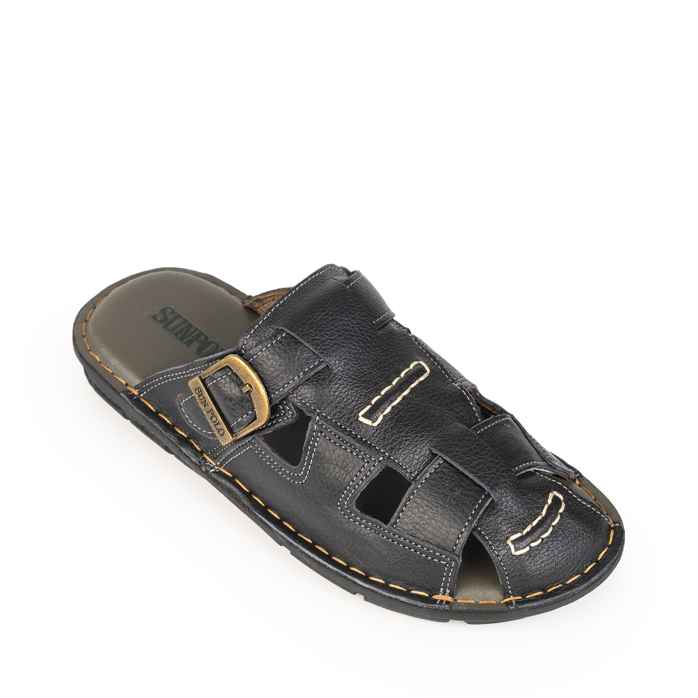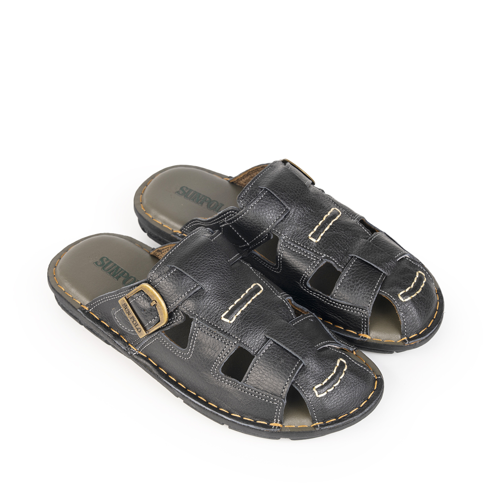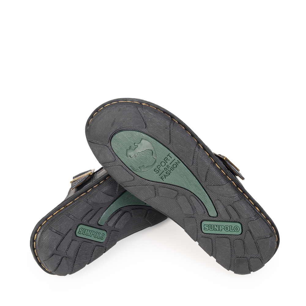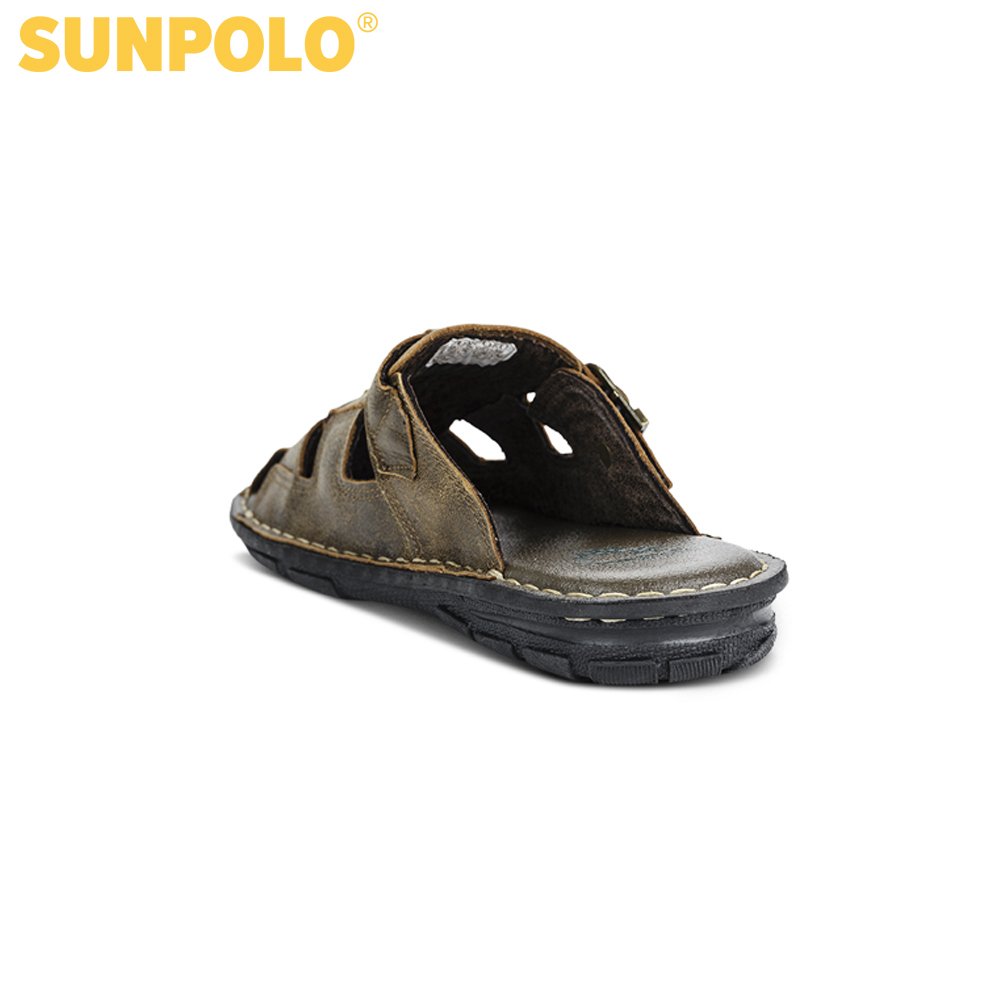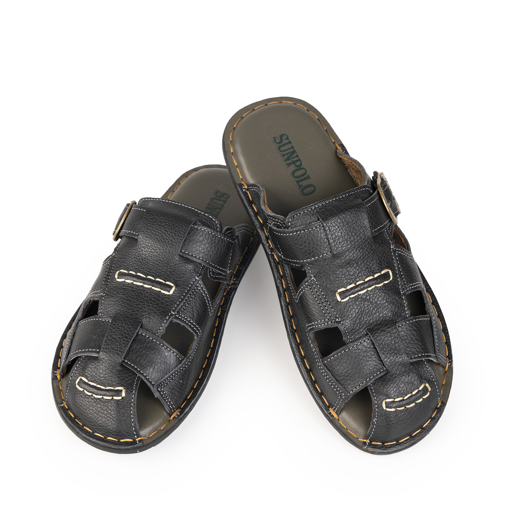 Dép bít mũi Nam Da Bò SUNPOLO Đen Nâu - ABI019 được làm từ chất liệu da bò nhập khẩu cao cấp, mang đến cảm giác êm chân, dễ chịu. Đôi quai ngang da bò rất mềm mại, thiết kế gọn nhẹ, thoáng mát, đường may vô cùng chắc chắn và khéo léo. Kiểu dáng đôi dép đơn giản nhưng rất tinh tế và đẹp mắt, dễ dàng kết hợp với nhiều loại trang phục khác nhau. Đế dép được đúc hoàn toàn từ cao su tự nhiên, với thiết kế xẻ rãnh tránh trơn trượt khi di chuyển, giúp từng bước đi của bạn thật tự tin, tràn đầy năng lượng.