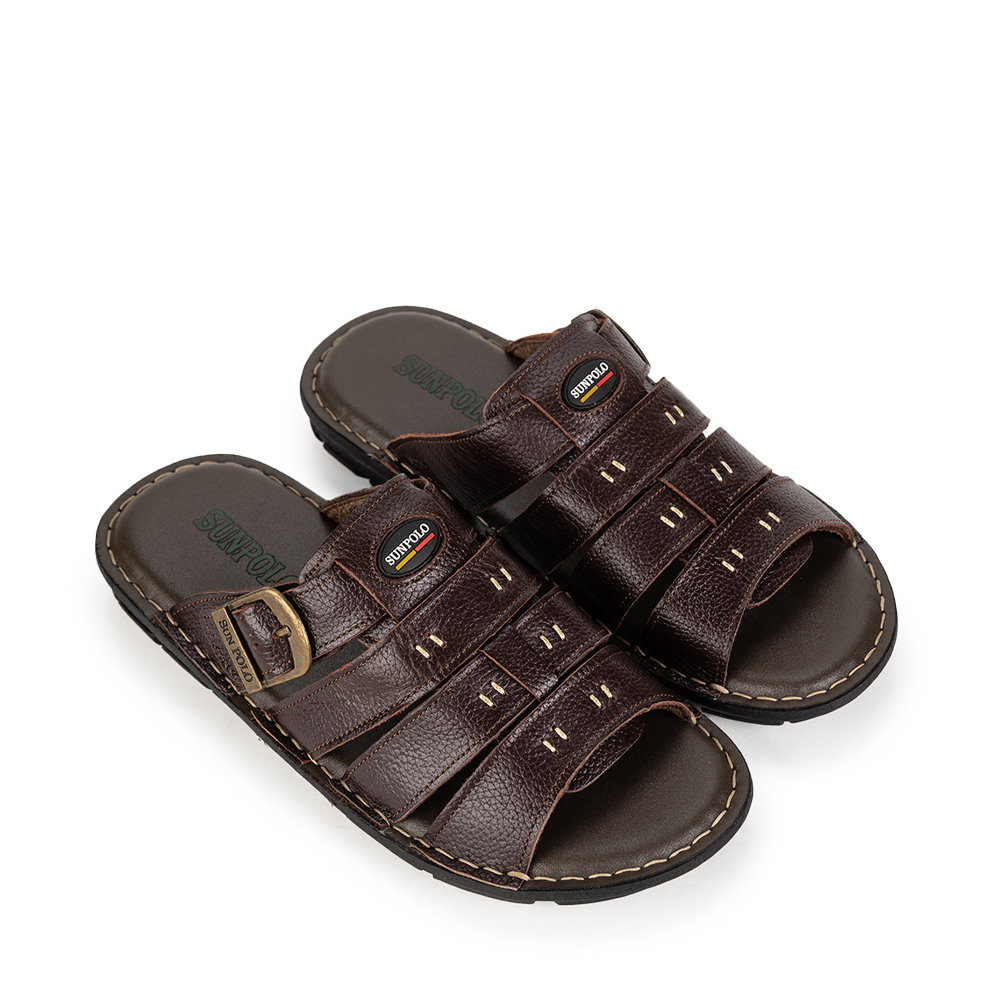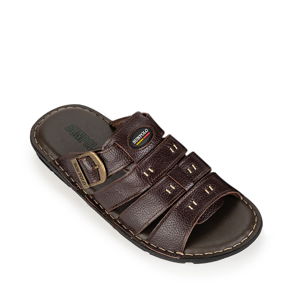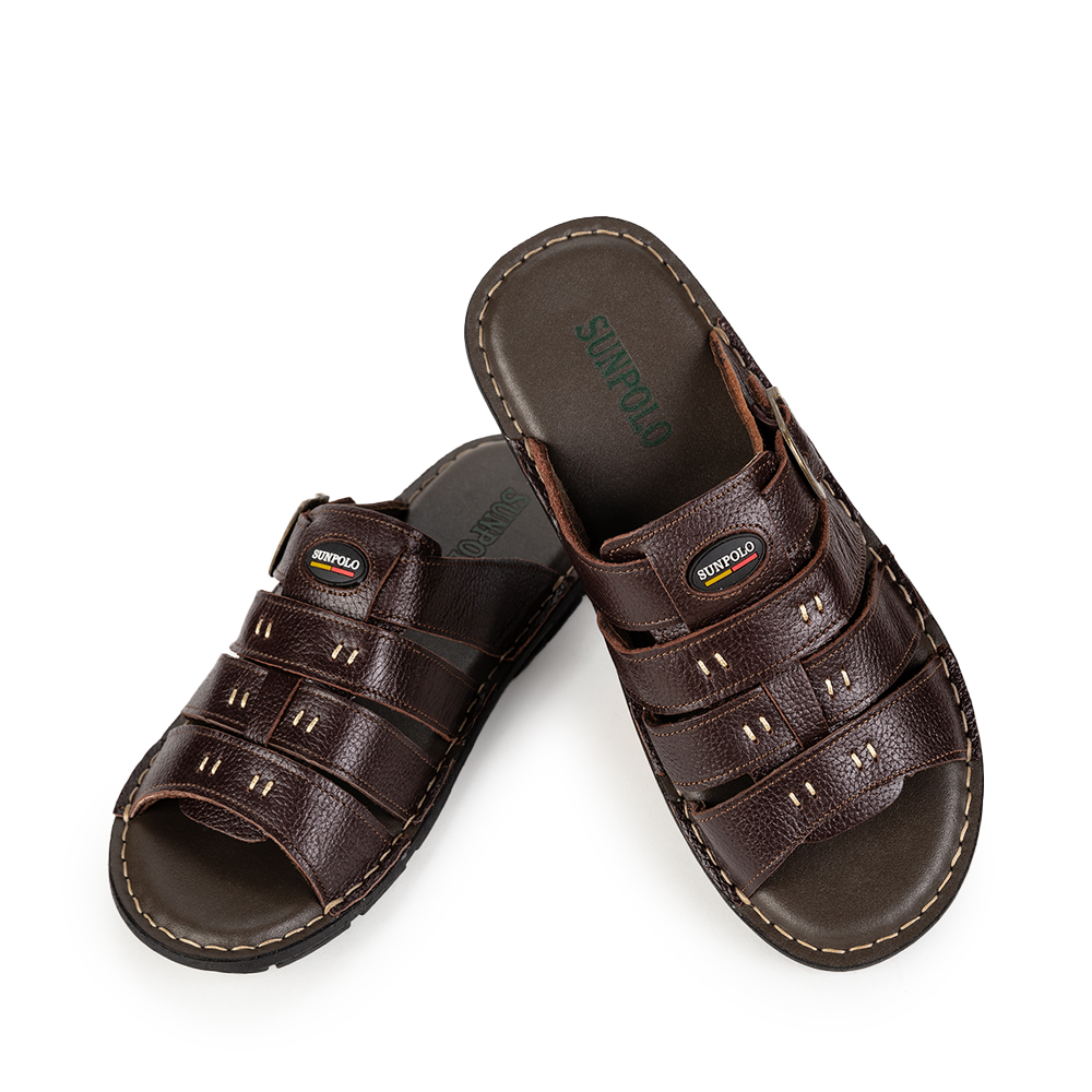 Dép Quai Ngang Nam Da Bò SUNPOLO Nâu - AQN006 được làm từ chất liệu da bò nhập khẩu cao cấp rất mềm mại với độ bền tốt mang đến cảm giác êm chân, dễ chịu khi di chuyển. Thiết kế dép quai đan, bản rộng tạo độ thông thoáng, ôm gọn đôi chân, đường may tỉ mỉ vô cùng chắc chắn và khéo léo. Đế dép được đúc hoàn toàn từ cao su tự nhiên, độ bám và độ đàn hồi tốt kết hợp mặt đế xẻ rãnh chống trơn trượt hiệu quả ngay cả khi đi mưa. Lựa chọn hoàn hảo cho đôi chân khi di chuyển hằng ngày