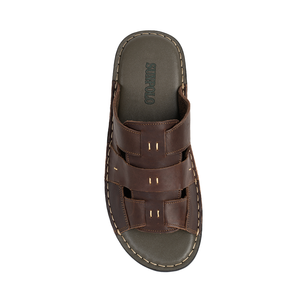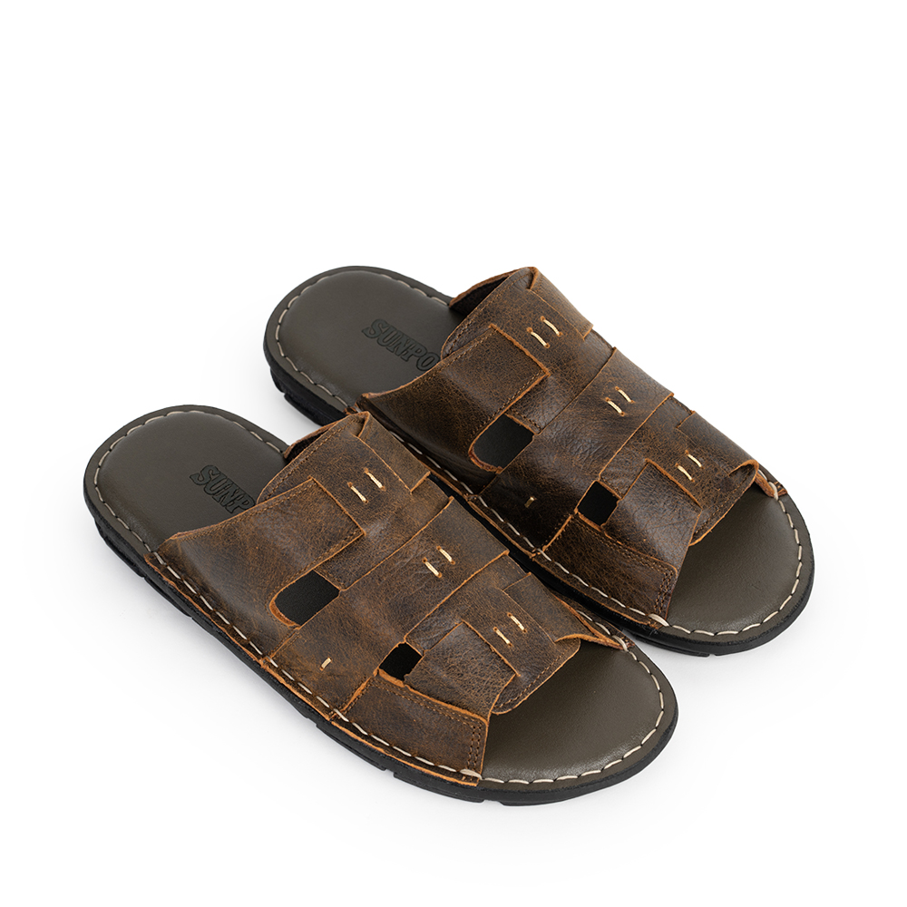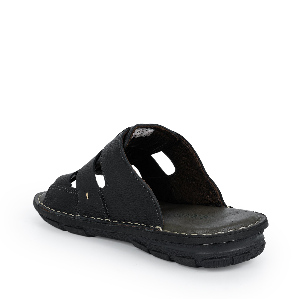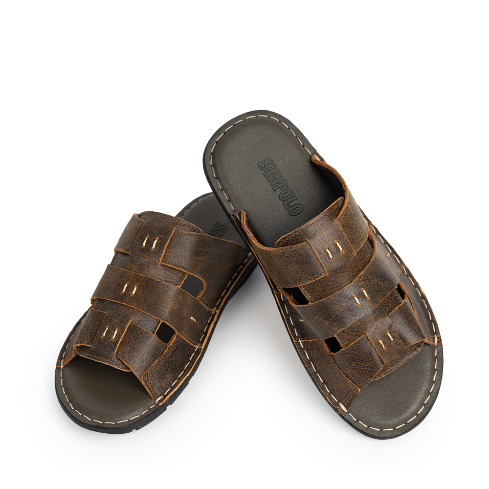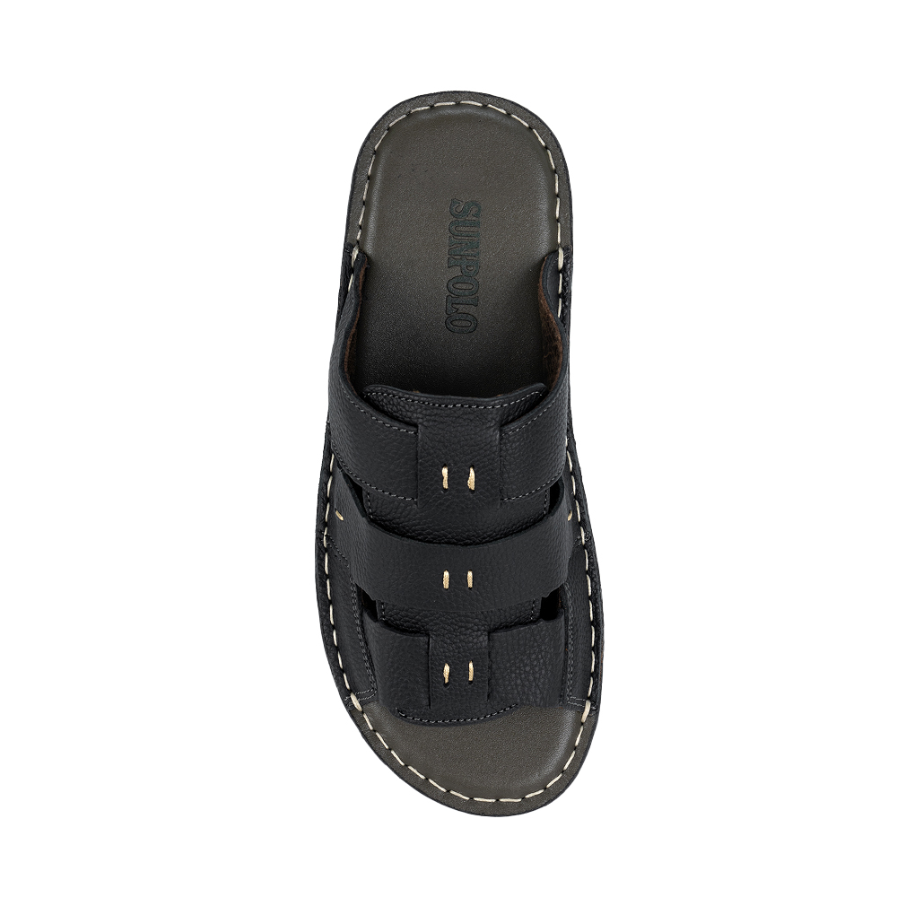 Dép Nam Quai Ngang Da Bò SUNPOLO AQN013 - Đen được làm từ chất liệu da bò cao cấp 100% dày dặn, mềm mại tạo cảm giác thoáng mát và dễ chịu, giúp quý ông tự tin trên từng chuyển động. Kiểu dáng dép nam tính, trẻ trung cùng với đường may tỉ mỉ và sắc xảo vô cùng chắc chắn, bền bỉ. Đế đúc cao su tự nhiên được thiết kế xẻ rãnh chống trơn trượt, tăng cường độ bám. Phần lót da thật tạo đệm êm chân khi di chuyển, mát mẻ không gây bí bách cho lòng bàn chân.