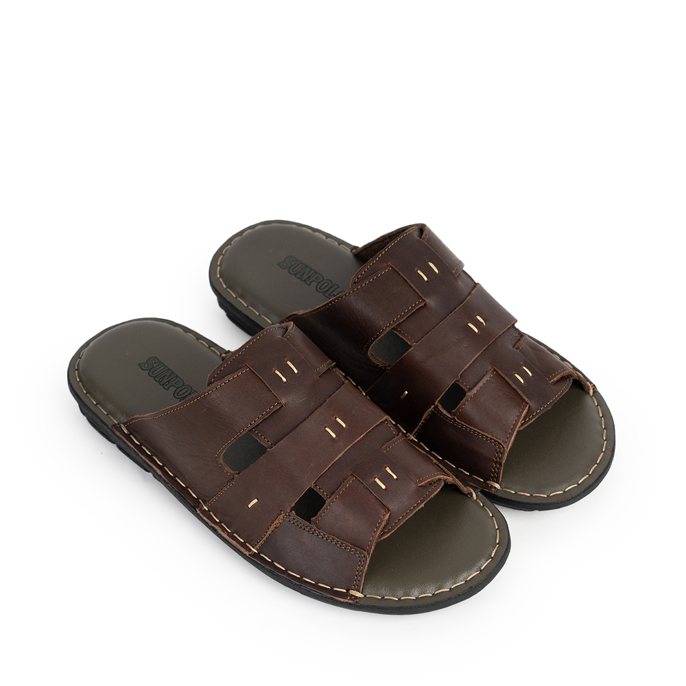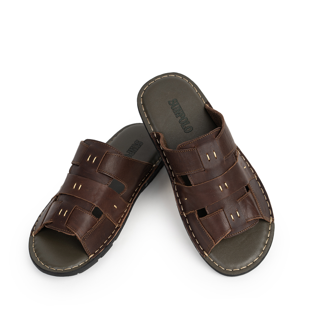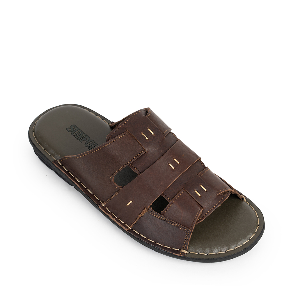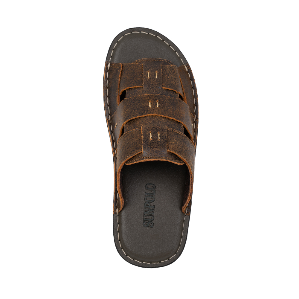 Dép Nam Quai Ngang Da Bò SUNPOLO AQN013 - Đen được làm từ chất liệu da bò cao cấp 100% dày dặn, mềm mại tạo cảm giác thoáng mát và dễ chịu, giúp quý ông tự tin trên từng chuyển động. Kiểu dáng dép nam tính, trẻ trung cùng với đường may tỉ mỉ và sắc xảo vô cùng chắc chắn, bền bỉ. Đế đúc cao su tự nhiên được thiết kế xẻ rãnh chống trơn trượt, tăng cường độ bám. Phần lót da thật tạo đệm êm chân khi di chuyển, mát mẻ không gây bí bách cho lòng bàn chân.