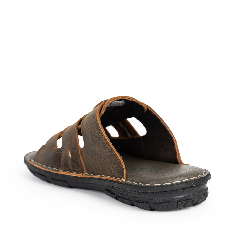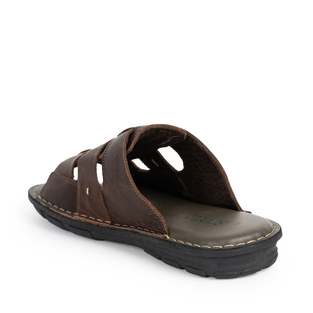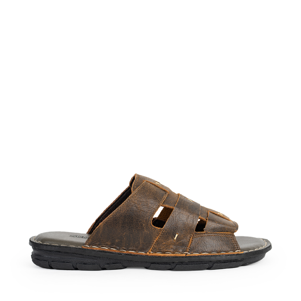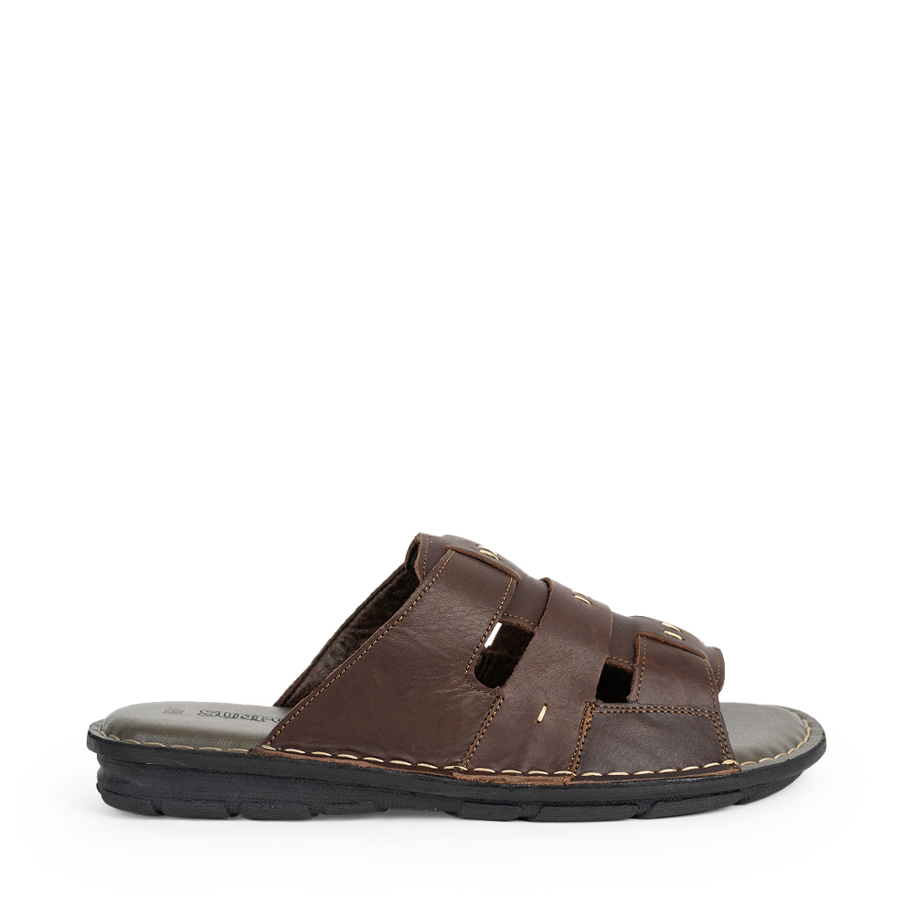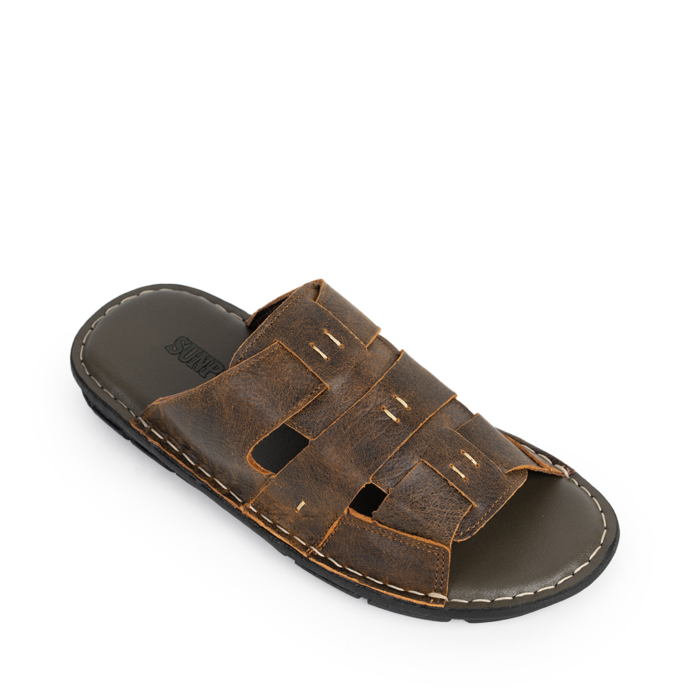 Dép Nam Quai Ngang Da Bò SUNPOLO AQN013 - Đen được làm từ chất liệu da bò cao cấp 100% dày dặn, mềm mại tạo cảm giác thoáng mát và dễ chịu, giúp quý ông tự tin trên từng chuyển động. Kiểu dáng dép nam tính, trẻ trung cùng với đường may tỉ mỉ và sắc xảo vô cùng chắc chắn, bền bỉ. Đế đúc cao su tự nhiên được thiết kế xẻ rãnh chống trơn trượt, tăng cường độ bám. Phần lót da thật tạo đệm êm chân khi di chuyển, mát mẻ không gây bí bách cho lòng bàn chân.