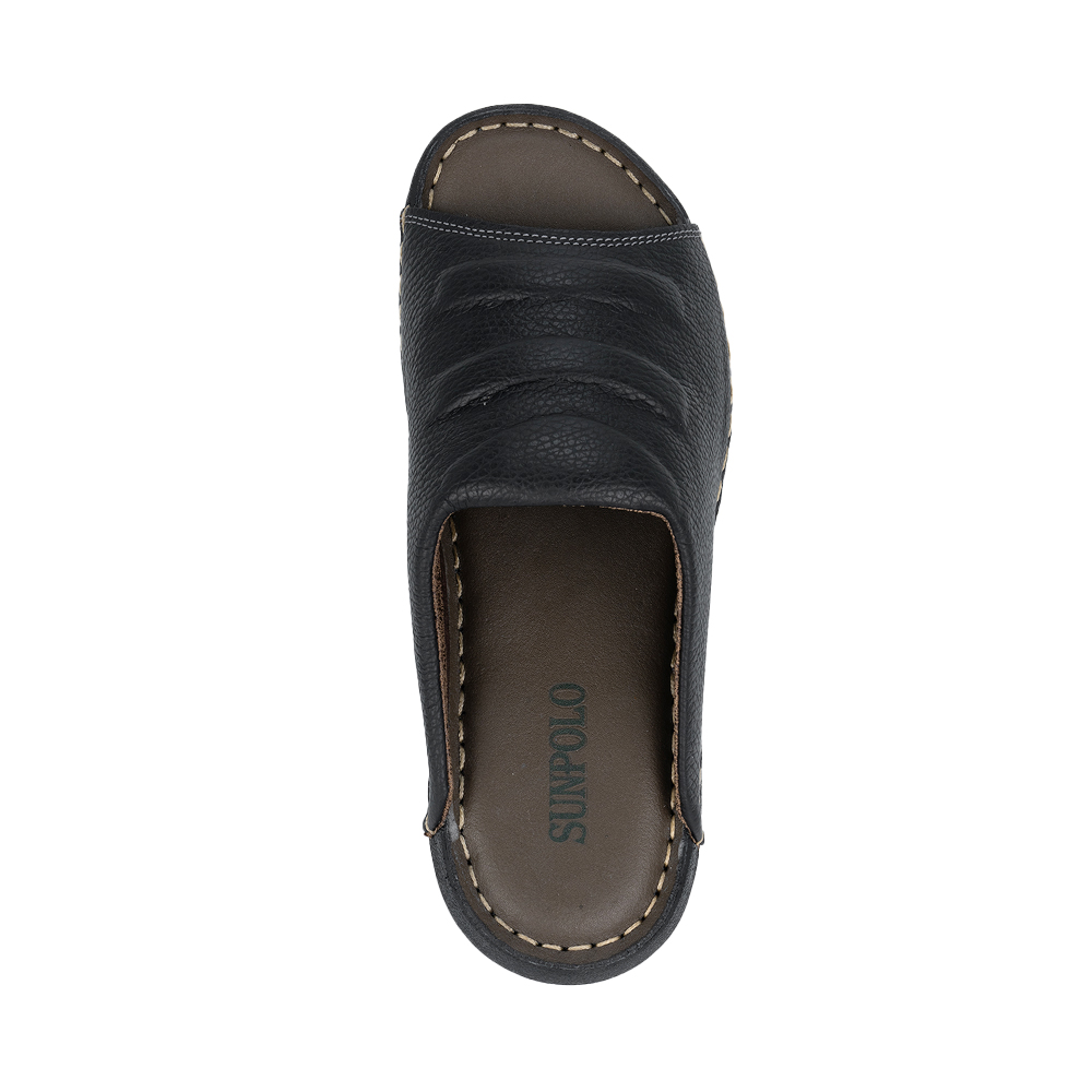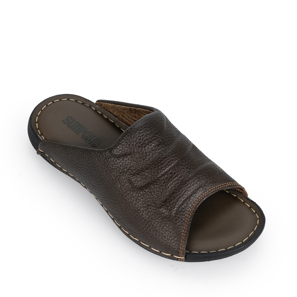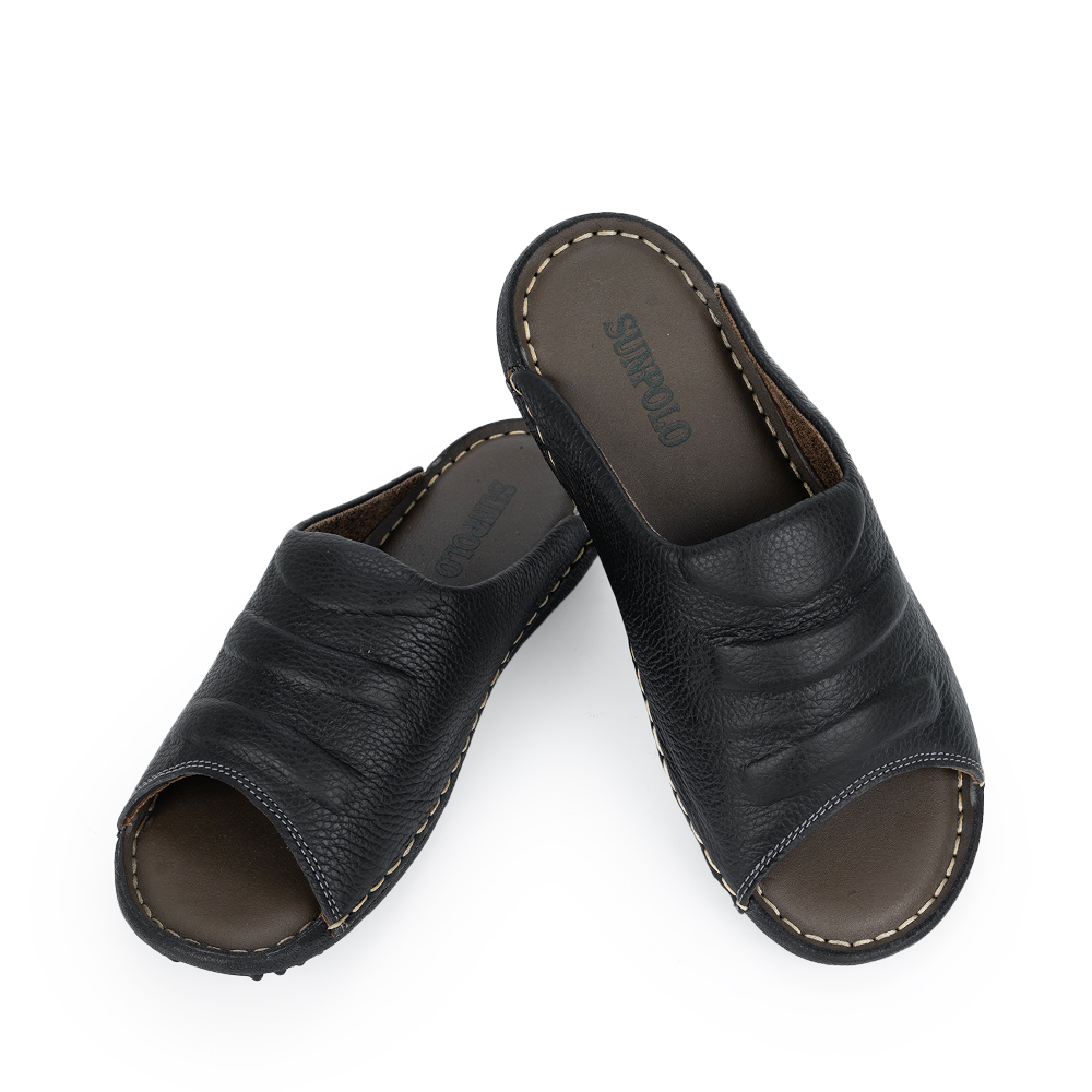 Dép Quai Ngang Nam Da Bò SUNPOLO Đen Nâu – DQN033 được làm từ chất liệu da bò nhập khẩu cao cấp, mang đến cảm giác êm chân, dễ chịu. Đôi quai ngang da bò rất mềm mại, thiết kế nam tính, đường may vô cùng chắc chắn và khéo léo. Kiểu dáng đôi dép đơn giản nhưng rất tinh tế và đẹp mắt, dễ dàng kết hợp với nhiều loại trang phục khác nhau. Đế dép được đúc hoàn toàn từ cao su, với thiết kế xẻ rãnh tránh trơn trượt khi di chuyển, giúp từng bước đi của bạn thật tự tin, tràn đầy năng lượng.