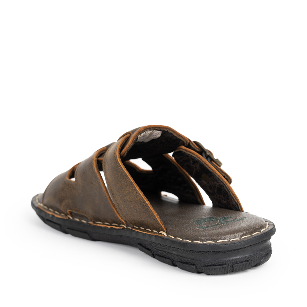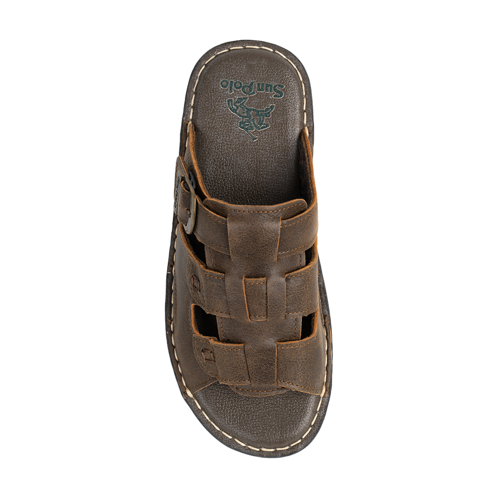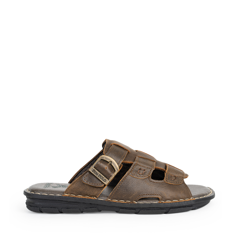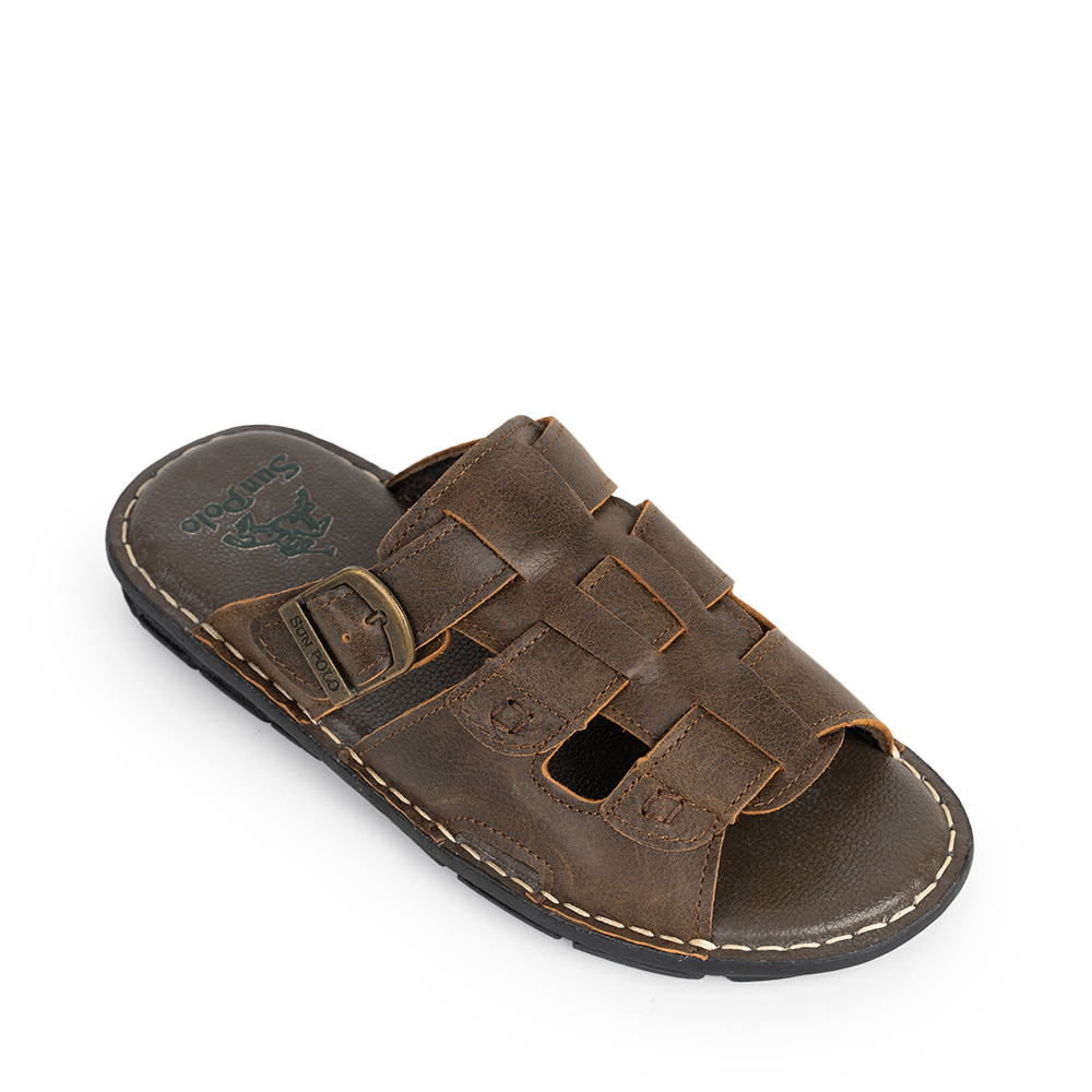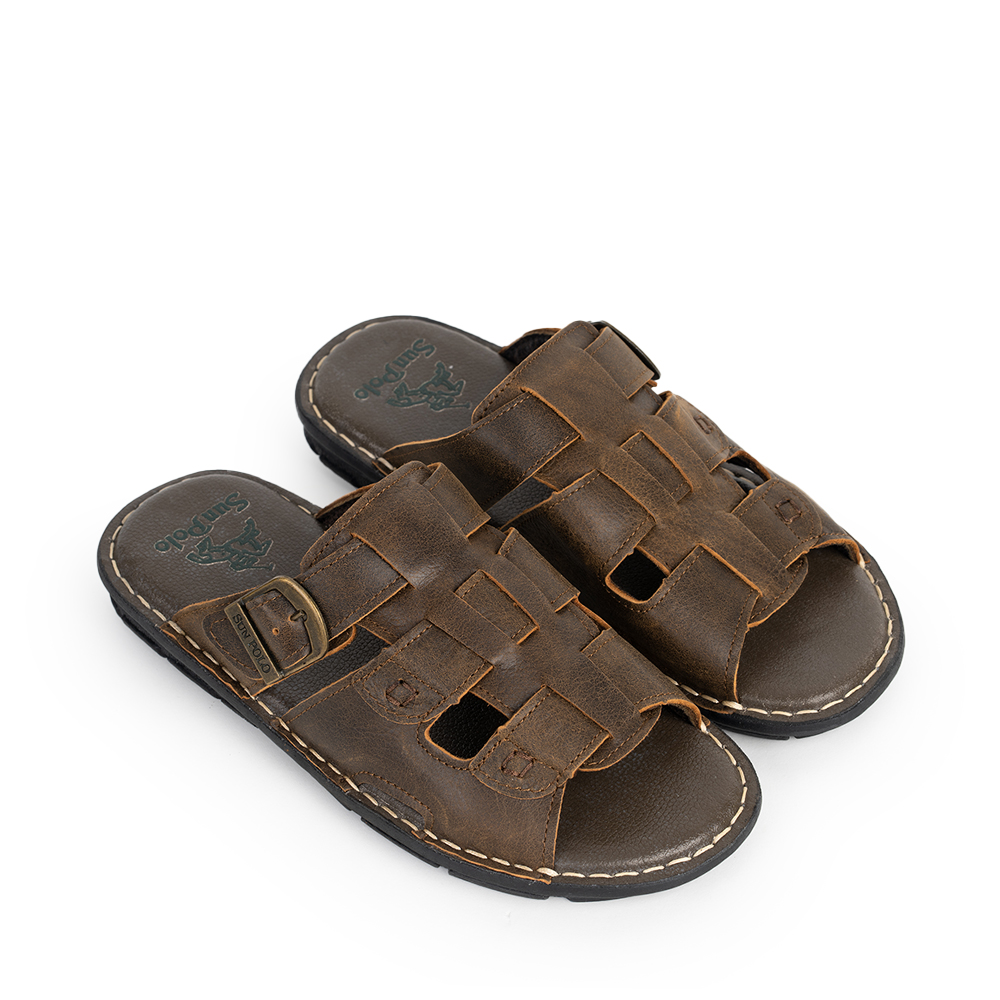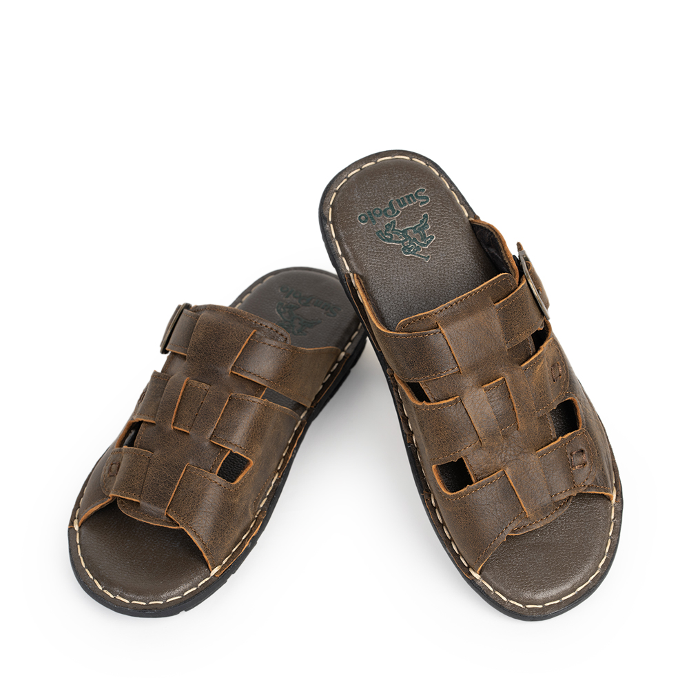 Dép Quai Ngang Nam Da Bò Cao Cấp SUNPOLO AQN022 - Đen Nâu được làm từ chất liệu da bò cao cấp 100% dày dặn, mềm mại tạo cảm giác thoáng mát và dễ chịu, giúp quý ông tự tin trên từng chuyển động. Kiểu dáng dép nam tính, trẻ trung cùng với đường may tỉ mỉ và sắc xảo vô cùng chắc chắn, bền bỉ. Đế đúc cao su tự nhiên được thiết kế xẻ rãnh chống trơn trượt, tăng cường độ bám. Phần lót da thật tạo đệm êm chân khi di chuyển, mát mẻ không gây bí bách cho lòng bàn chân.