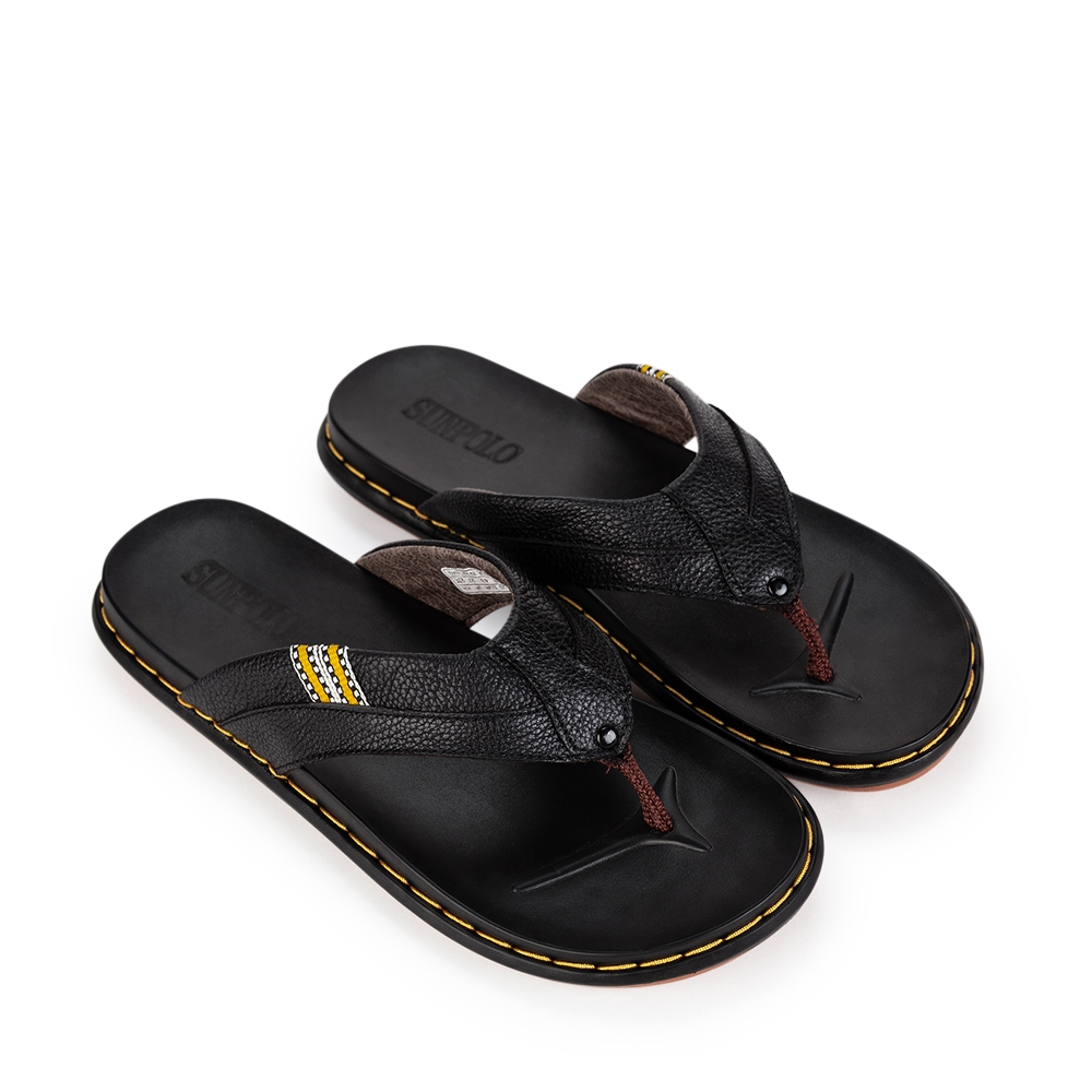 Dép Kẹp Nam Da Bò SUNPOLO Đen Bò – KEP203 được làm từ chất liệu da bò, mang đến cảm giác êm chân, dễ chịu. Quai xỏ da bò tiện lợi, rất mềm mại, chắc chắn, bền đẹp, kết hợp với đường may vô cùng khéo léo được thiết kế bởi những người thợ lành nghề. Kiểu dáng đôi dép đơn giản nhưng rất tinh tế và đẹp mắt, dễ dàng kết hợp với nhiều loại trang phục khác nhau. Phiên bản mới cải tiến, đế dép cao su vô cùng êm nhẹ, có may khâu giữa phần thân quai và đế dép chắc chắn, bền bỉ.