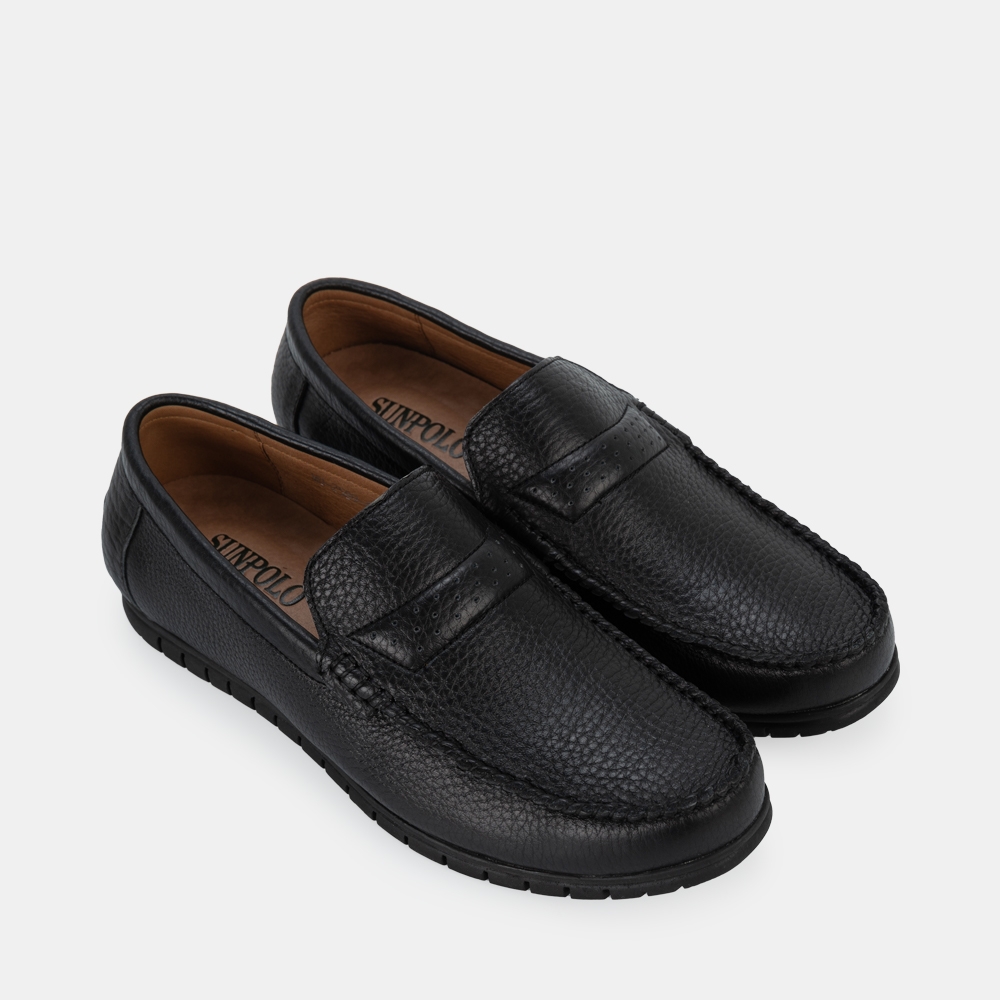 Giày Lười Nam Da Bò SUNPOLO Đen Nâu MU2589