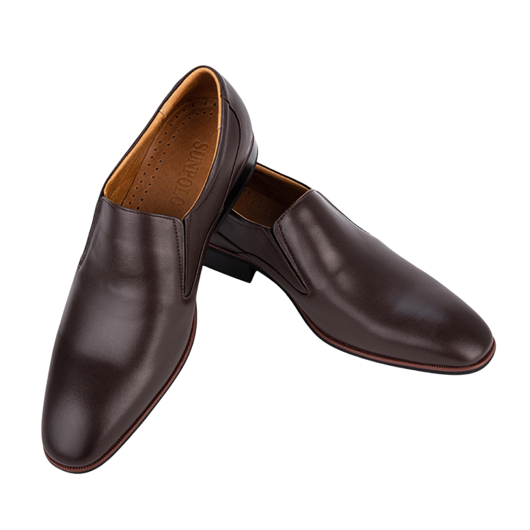 Giày Tây Nam Da Bò SUNPOLO Đen Nâu – SUMU6673 được làm bằng chất liệu da bò cao cấp bền đẹp kết hợp đế cao su xẻ rãnh êm nhẹ chống trơn trượt giúp cho bạn thật thoải mái, tự tin cùng vẻ ngoài sang trọng, lịch lãm nơi công sở, dự tiệc hay khi đi chơi, dạo phố. Sản phẩm được thiết kế thủ công, tinh tế và sắc xảo với đặc trưng một tông màu chủ đạo giúp cho việc phối đồ trở nên thật dễ dàng. SUNPOLO chúng tôi luôn nhấn mạnh tầm quan trọng của chất lượng và thiết kế sản phẩm nhằm mang đến trải nghiệm tốt nhất cho khách hàng. Hơn nữa, sản phẩm có 2 phiên bản màu sắc Đen - Nâu giúp cho sự lựa chọn của bạn trở nên dễ dàng hơn.